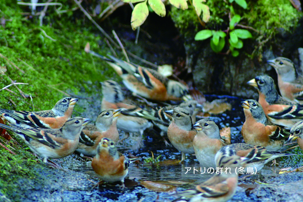 島根の森には季節によって旅をする野鳥がたくさんいます。キビタキやオオルリなどは、春に東南アジア等の暖かい地域からやってきて島根の森で子育てをして、秋になると旅立っていきます。逆に、アトリやジョウビタキなどは、秋になると凍てつく大地から逃れるように島根にやってきて冬を過ごし、春になると子育ての場所へと旅立ちます。