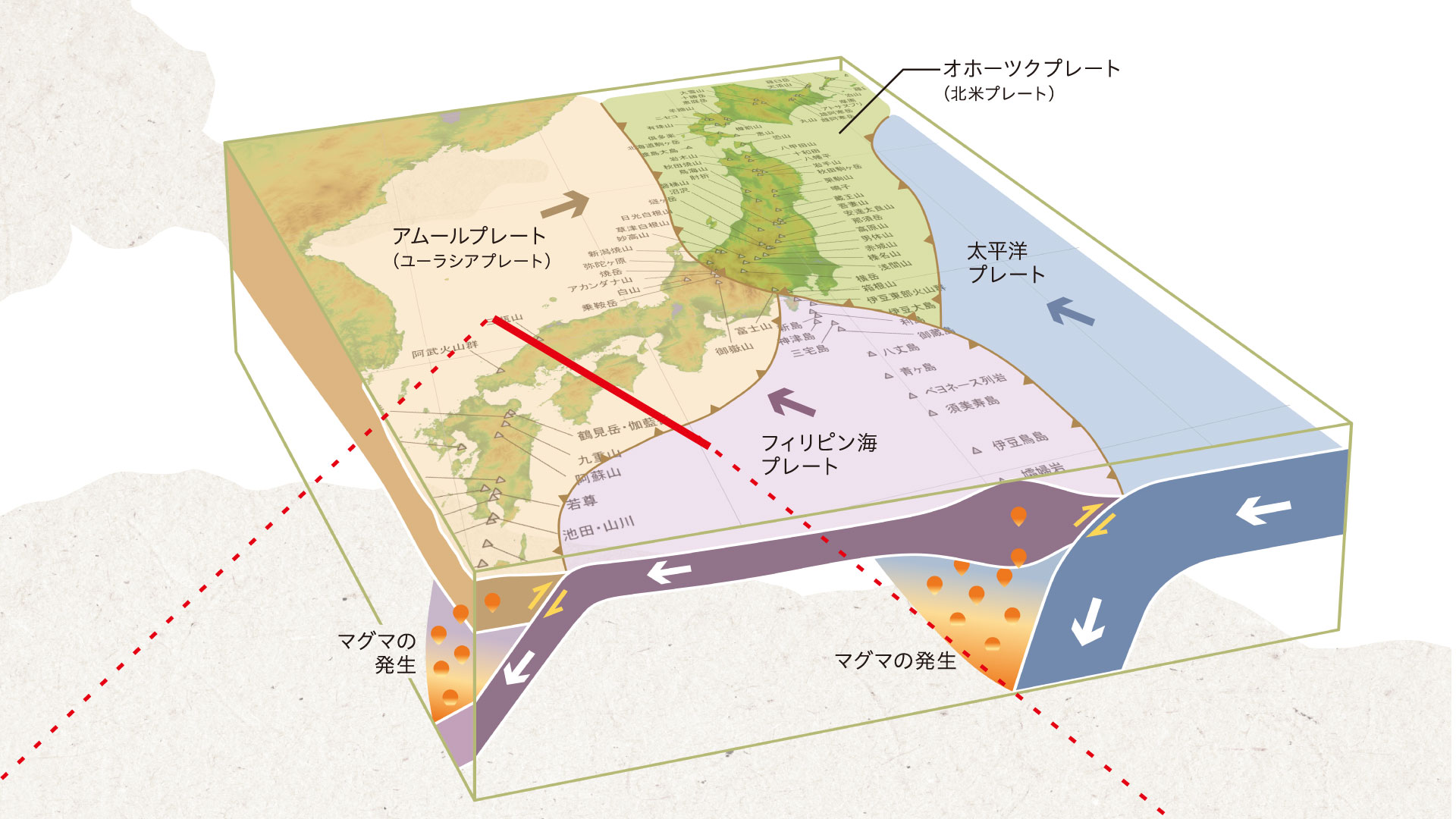 3.沈み込んだ海洋地殻が溶けて、ケイ酸に富むマグマが発生