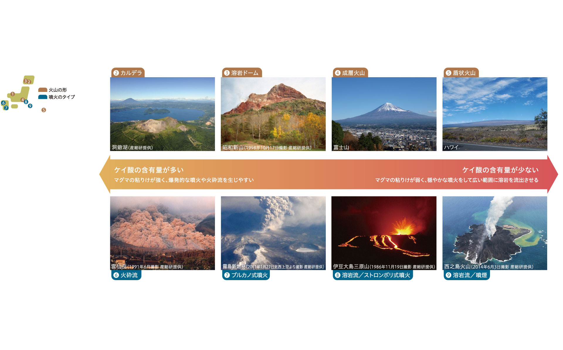 1.溶岩ドーム/カルデラ/火山砕屑丘