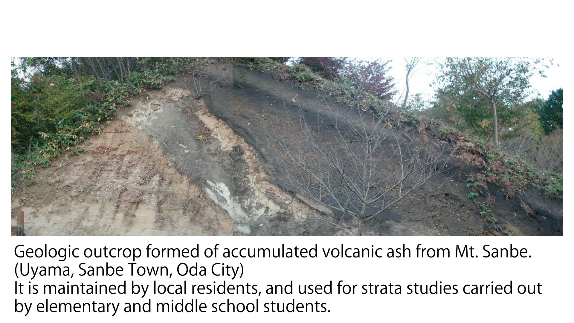 산베산의 화산재가 퇴적한 지층 노두(오다시 산베초 우야마)