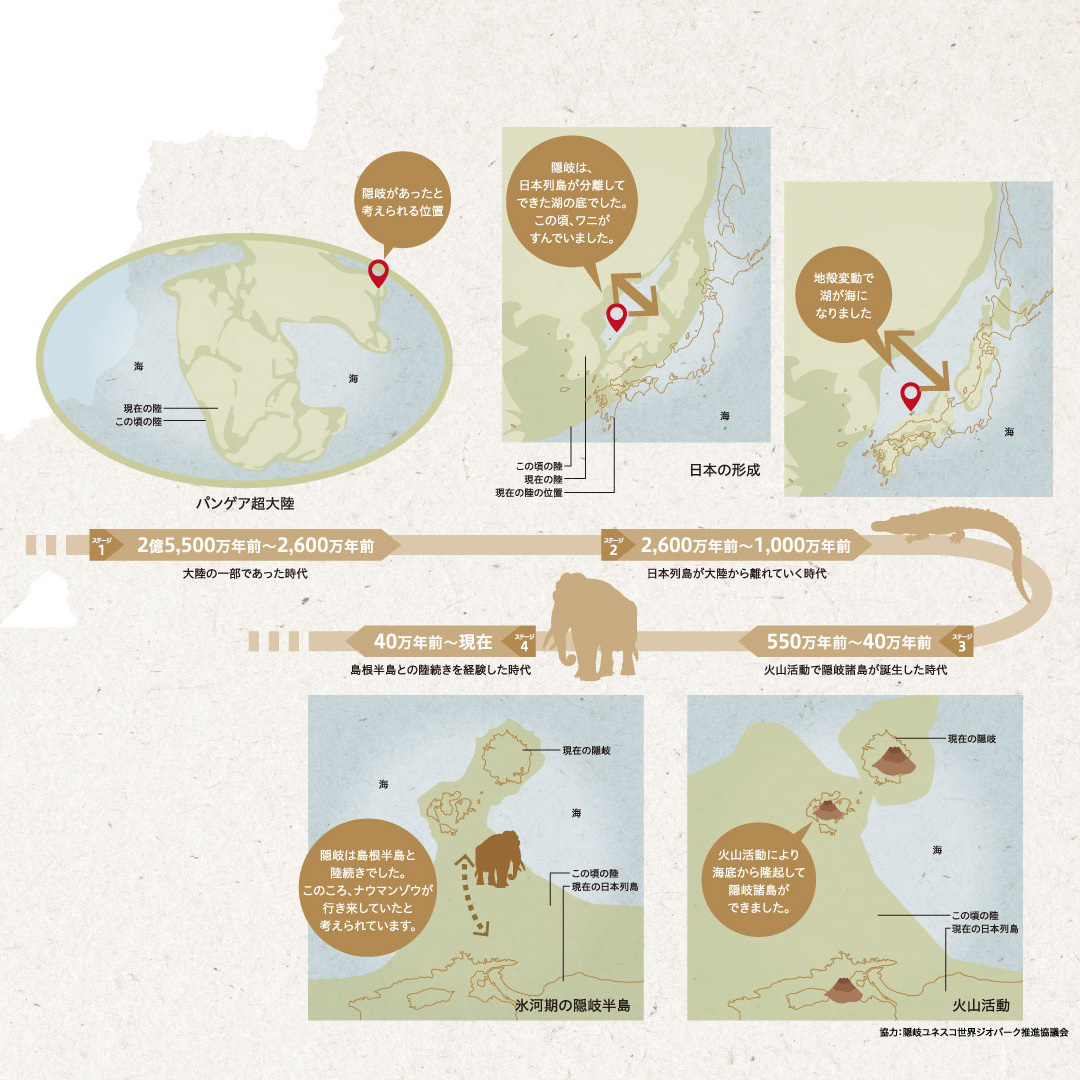 隠岐諸島が形成されるまでの地史は、大きく4つのステージからなります。