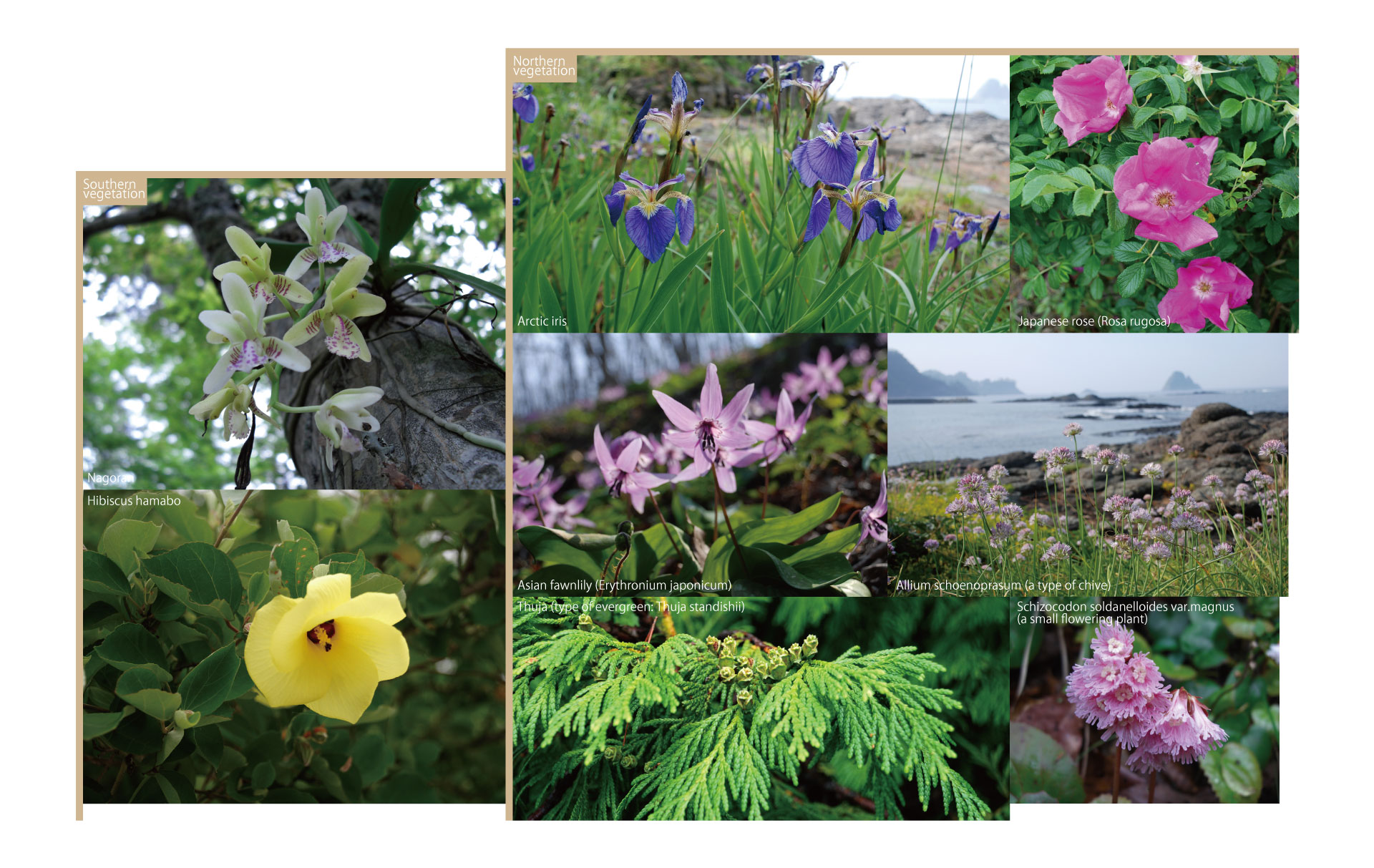 Por exemplo, as ilhas têm as áreas nas quais as plantas encontradas em Hokkaido crescem lado a lado com as plantas encontradas em Okinawa. Do ponto de vista da história geológica, é fascinante observar a presença das espécies endêmicas que são encontradas somente nas ilhas de Oki.
